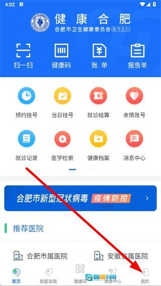 1、打开健康合肥,点击页面右下角我的。
