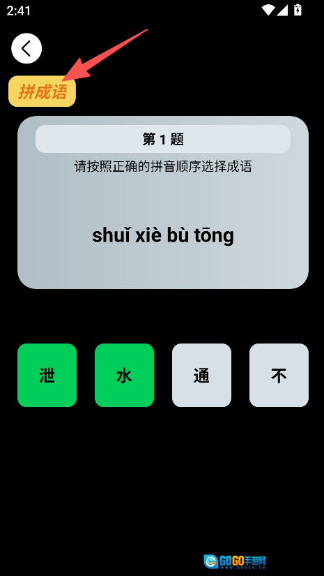 拼成语时,按照拼音顺序选择汉字组成成语。