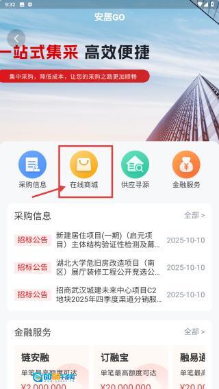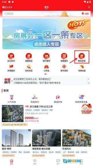 1、打开房产类应用,找到集采商城的功能入口并点击,即可进入集采页面。