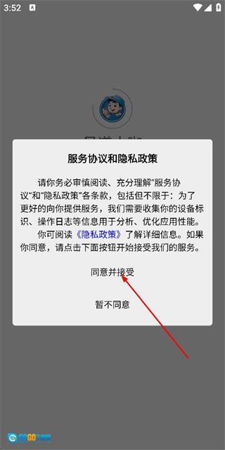 在使用协议与隐私政策弹窗中点击同意并接受,即可进入登录页面。