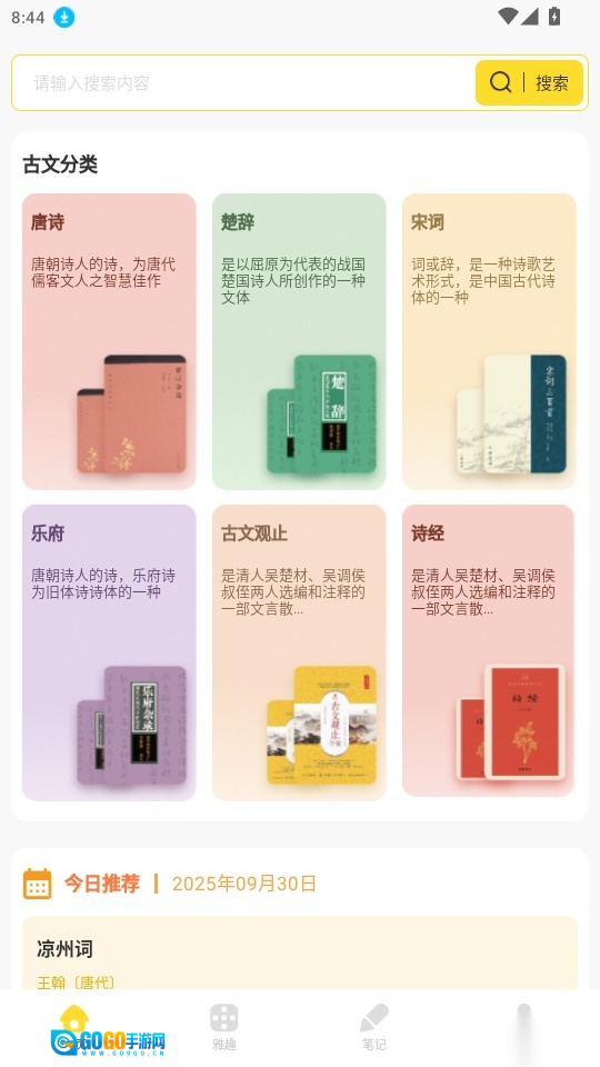 把各类古诗词进行分类整理,用户能够依据古文的分类来查找自己想要阅读的各类诗词内容。