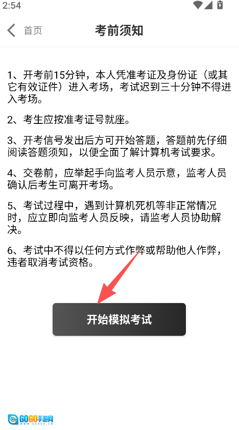 阅读考前须知,点击开始模拟考试。