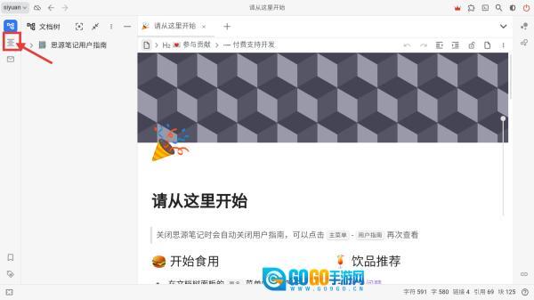 打开思源笔记应用,点击左侧的大纲按钮,使大纲列表展开。