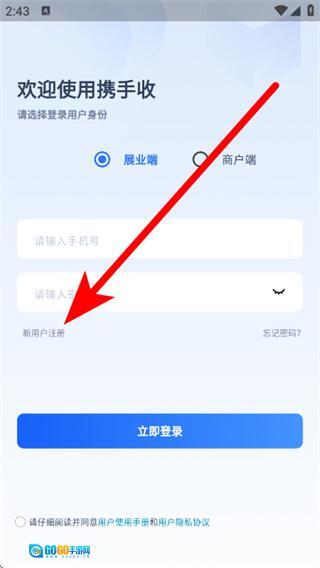 在携手收,在提示弹窗,点击同意,进入登录页面。