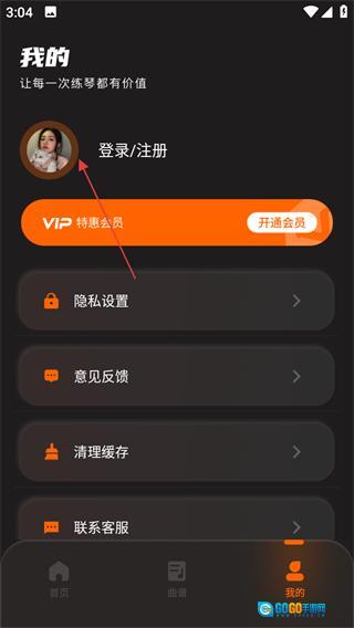 在个人中心页面,点击头像区域,进入登录注册页面。