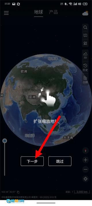 学习扩张缩放地球的引导页,点击下一步。