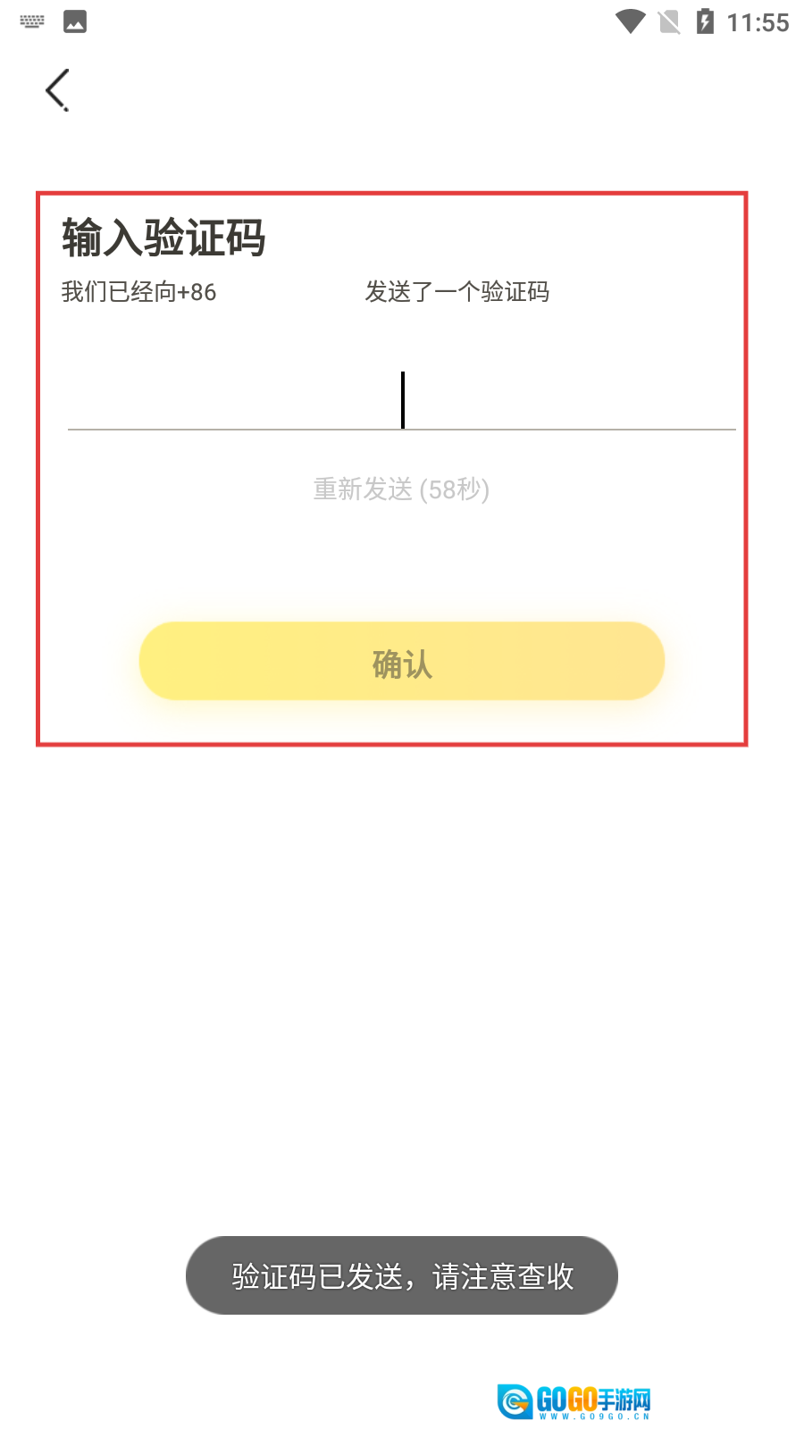 在验证码输入界面,填写收到的验证码后,点击【确认】按钮即可完成登录操作。