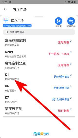 进入站点页面后,点击要查询的公交线路。