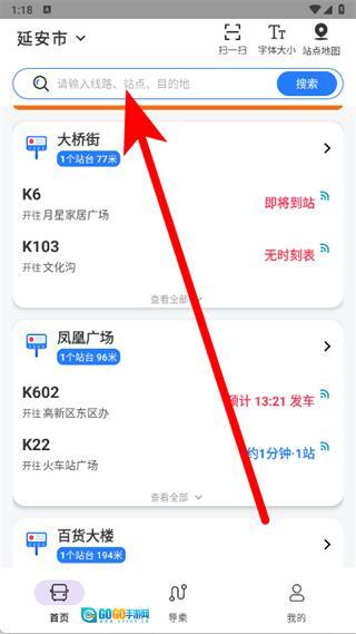 打开易公交,点击顶部搜索框,输入站点名并搜索。