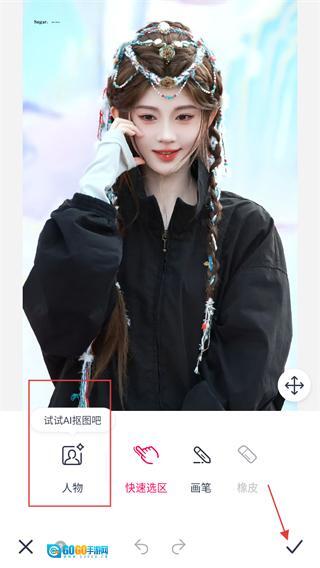 在抠图编辑界面中,选定人物抠图的模式,操作结束后点击确认按钮,就能完成抠图任务。