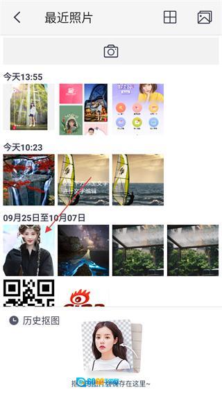 在最近照片选择界面中,挑选需要进行抠图处理的照片,随后进入抠图编辑界面。