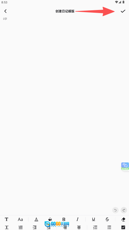 进入编辑页面后,输入日记内容并点击右上角的对勾图标就能完成操作。