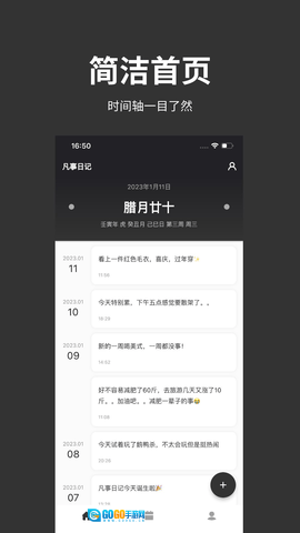 《凡事日记》是一款聚焦日常记录的工具,采用极简界面设计,以当前公历日期与农历信息作为引导,并搭配励志语句来营造平和的使用氛围。其核心功能是快速记录生活中的点滴琐事,用户通过底部的加号按钮即可一键创建新条目,操作流程十分简洁。主页与日历视图的设置,能够帮助用户便捷回顾不同日期的记录内容,整体结构清晰明了。这款工具的设计理念是弱化繁杂功能,着重凸显文字记录的本质,以此鼓励用户坚持书写,非常适合想要培养记录习惯、留存生活片段的个人使用。