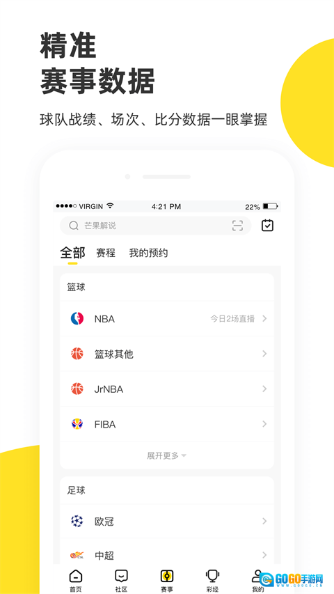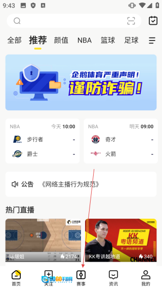在软件界面找到【赛事】按钮并点击,进入赛事界面后,即可查看各类赛事的赛程信息。