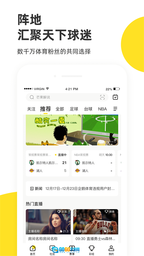 汇聚众多知名体育主播与高颜值女主播,实时解说赛事并与用户互动,搭配弹幕吐槽、奖池竞猜等功能,让观赛不再孤单。