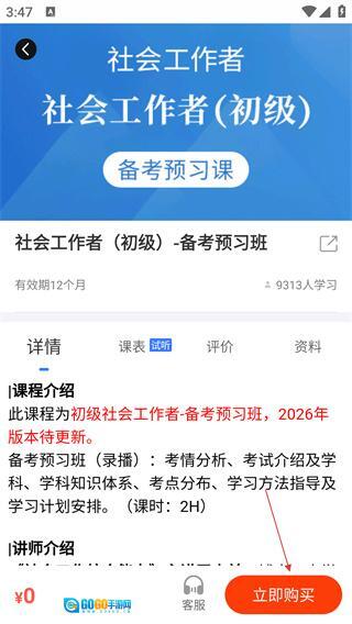 你可以在软件首页找到【社会工作者-备考预习班】的课程入口,点击该入口就能进入课程详情页。