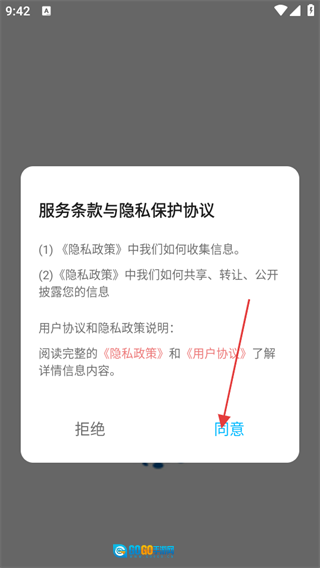 在服务条款与隐私保护协议的弹窗里,点击【同意】按钮,即可进入应用的首页。