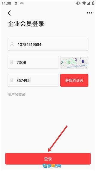 企业会员登录界面需填写【手机号码】、【图片验证码】与【短信验证码】。