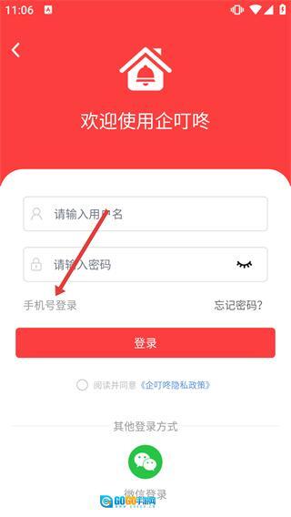 在登录页面选择【手机号登录】选项,即可进入企业会员登录界面。