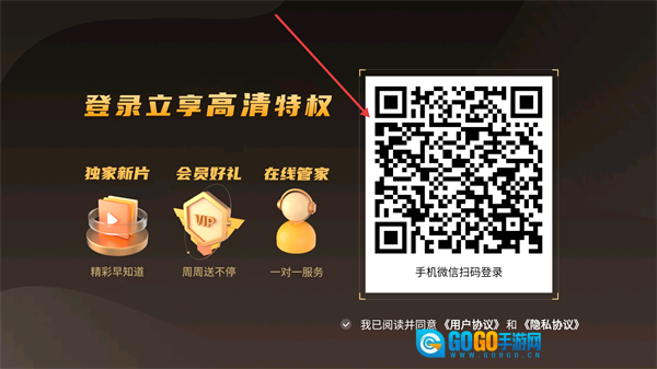 用手机微信扫码登录后,就能立刻享受高清特权、独家新片以及会员好礼等各类权益。