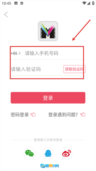 输入【手机号码】和【验证码】。