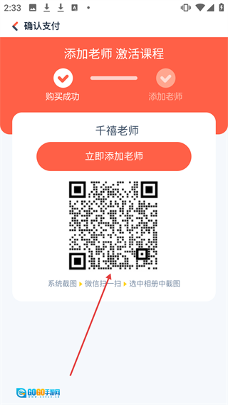 领取成功后,您可以扫描二维码添加千禧老师,从而激活课程。
