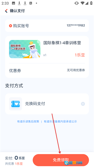 在确认支付页面,点击【免费领取】。