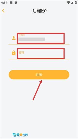 在账户注销页面,输入【手机号码】和【登录密码】,然后点击【注销账户】按钮,就能完成账号的注销操作了。
