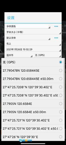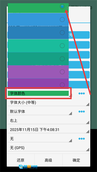 在设置界面里点击【字体颜色】选项,挑选你喜欢的颜色,给时间水印的字体更换新的色彩,这样就能让照片更具个性啦。