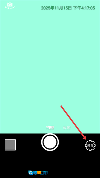 进入相机界面后,点击【设置】选项,进入设置页面,这样就能为拍摄增添更多个性化的设置啦。