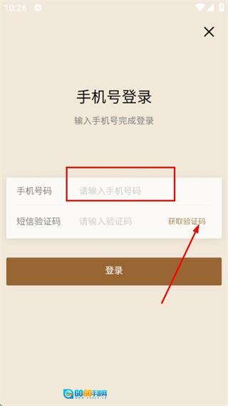 在手机号登录页面填写手机号后,点击获取验证码。