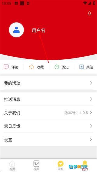 在个人中心页面,点击用户名区域,进入登录页面。