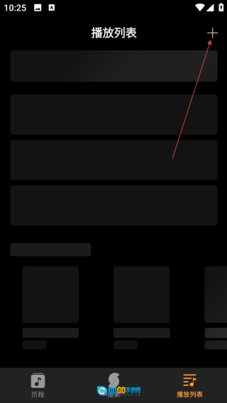 进入播放列表页面后,点击右上角的【+】按钮,即可调出新建曲目表的操作选项。
