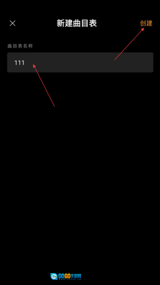 在新建曲目表页面,先【输入名称】,再点击【创建】按钮,就能完成新曲目表的创建。