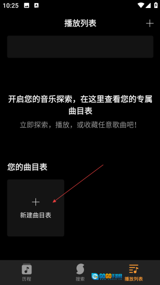 在播放列表页面,点击【新建曲目表】选项,即可进入曲目表的创建界面。