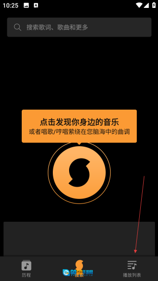 在音乐首页,点击底部的【播放列表】选项,即可进入播放列表管理页面。