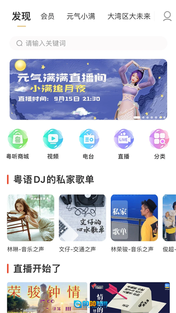 打开粤听,点击底部【直播】,进入直播板块哦。