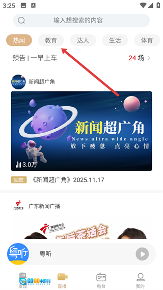 在直播页面里,找到【教育】分类并点击,就可以看到教育类的直播内容了。