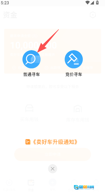 打开软件,点击普通寻车或竞价寻车。