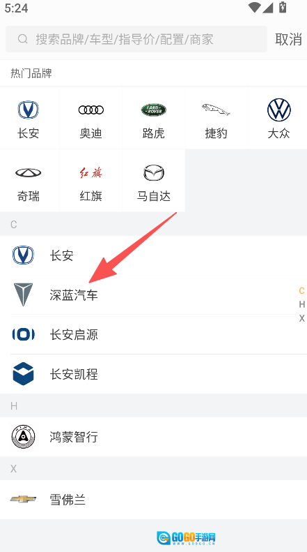 选择汽车品牌,如深蓝汽车。