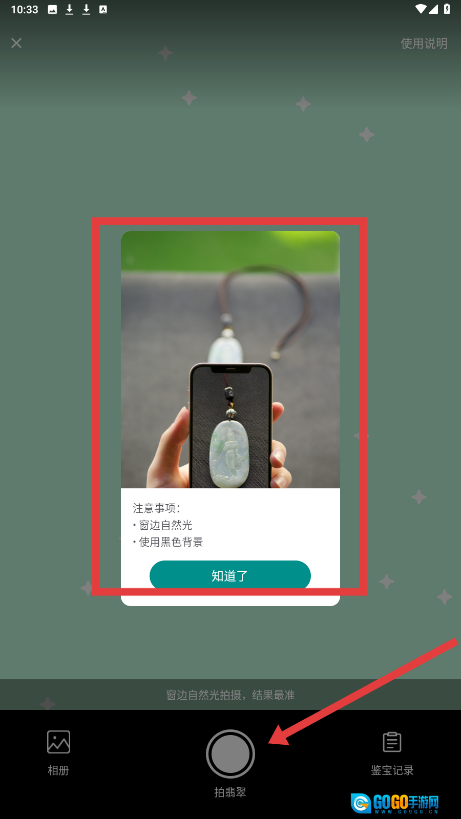 拍摄翡翠时,你可以选择从【相册】上传照片,也可以点击【拍翡翠】直接进行拍摄。