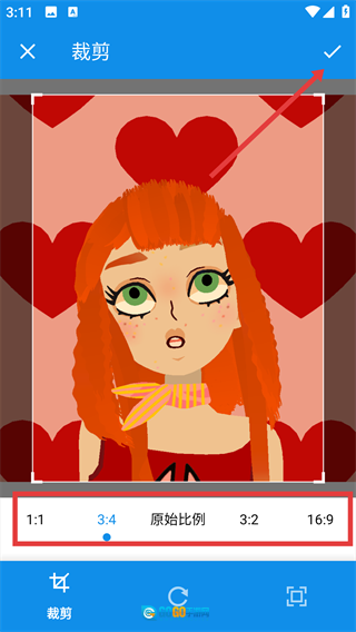 先挑选好你需要的裁剪比例,接着调整裁剪的区域,之后点击页面右上角的确认按钮,这样就能完成图片的裁剪步骤了。