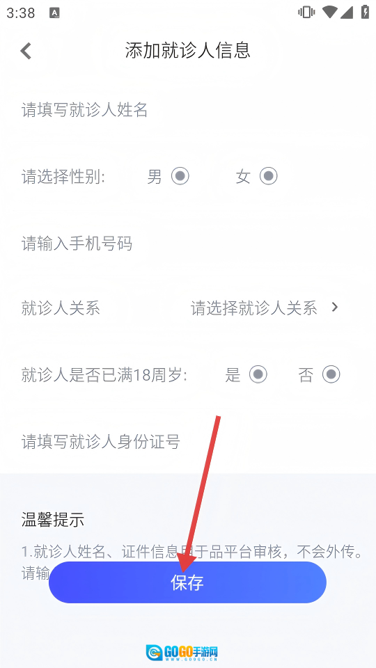 最后完成所有信息填写后,点击【保存】按钮提交就诊人资料,这样就完成了就医账号的信息配置。