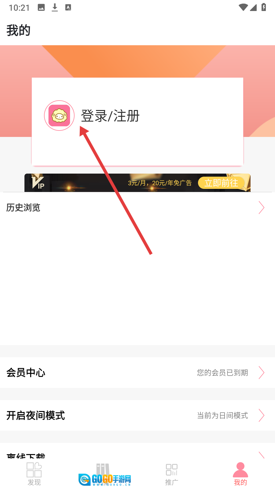 发现页点击右下角【我的】,进入个人中心界面。