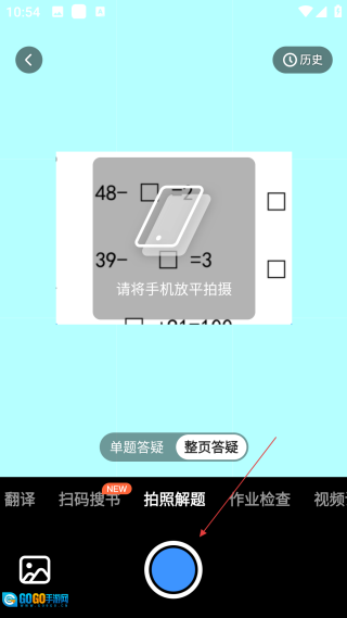 在拍摄页面将题目对准后,点击【拍摄按钮】,系统会获取题目内容并进行识别。