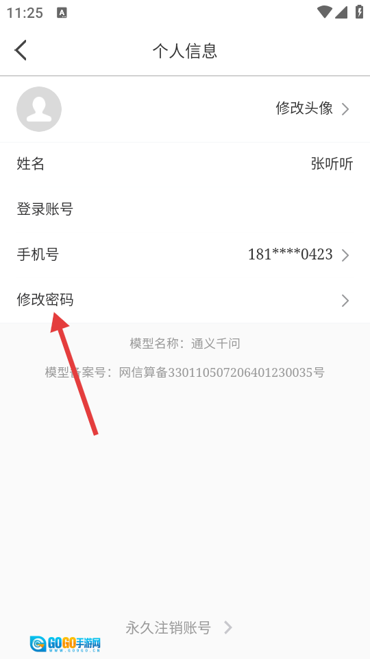 在个人中心页,点头像,进入个人信息页。