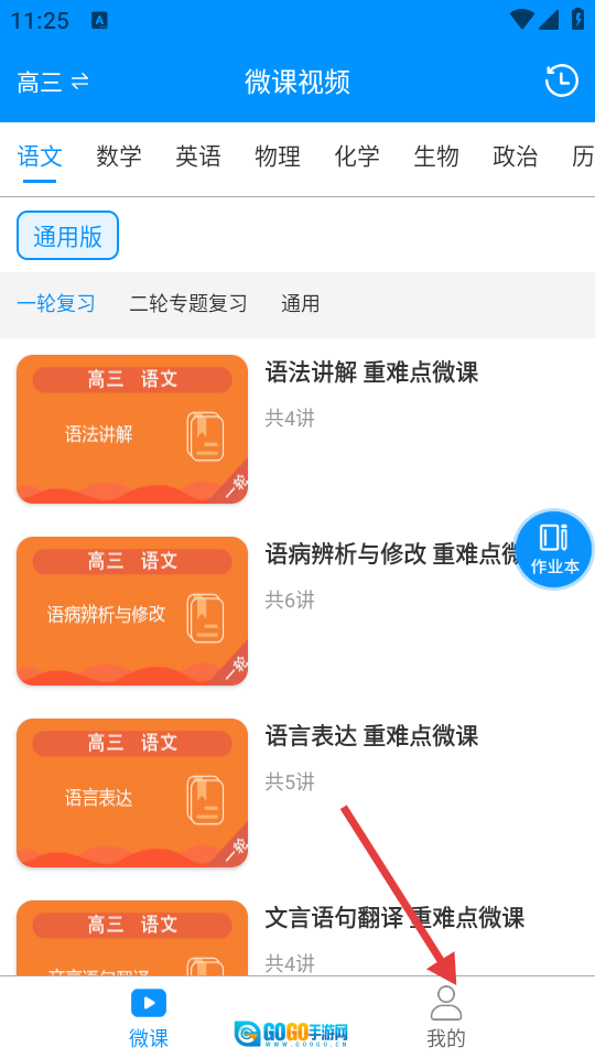 从微课页点【我的】,进入个人中心页。