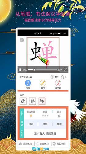 同步学习功能:精准对应1-6年级语文教材里的生字表,针对每个汉字,都配备了笔顺动态演示、拼音清晰标注以及组词拓展练习等内容。
