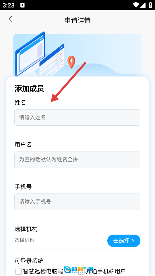 在添加成员的页面中,按顺序填写各项相关信息,全部填好后提交申请即可。