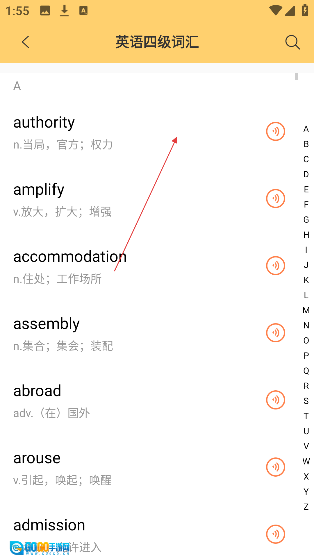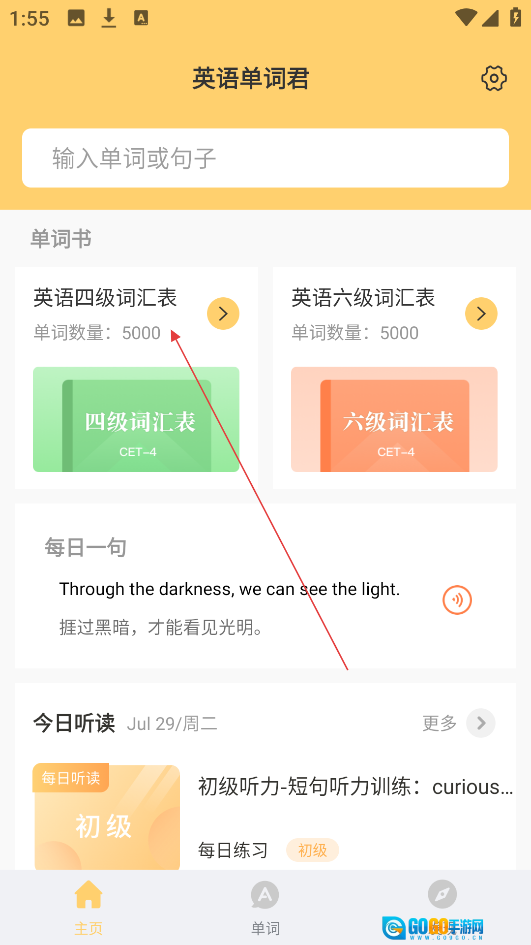 在应用的主界面找到【英语四级词汇表】这个选项并点击,就能进入到单词学习的页面了。